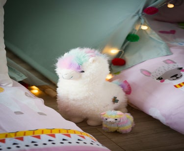 Hoe leuk is het om in een safari tent met deze schattige kleurrijke dekens met mooie lama's te mogen slapen? Dat is toch super cute!