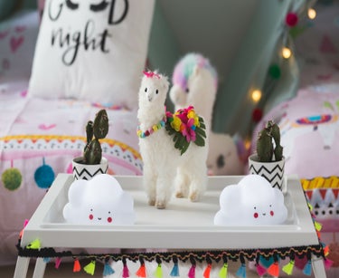 Dit thema bestaat uit maximaal 6 tentjes en komt met een leuke opblaasbare cactus in pot, en super schattige lama's als decoratie, vrolijke pom pom lichtjes slinger, zaklampjes en een nep kampvuur.
